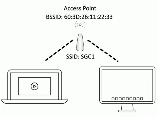- The hardware address of an access point is a BSSID (Basic Service Set Identifier)