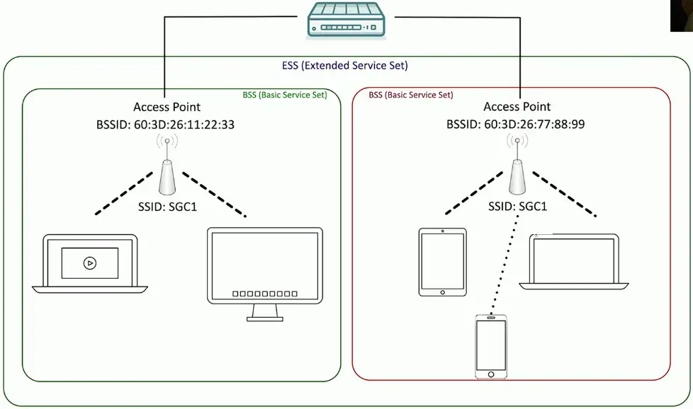 The network name shared across access points is an ESSID
