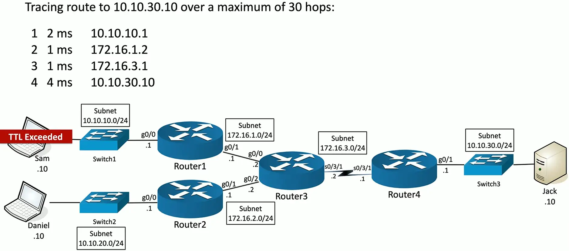 - TTL = 1 is the first router, TTL = 2 is the second router, etc.